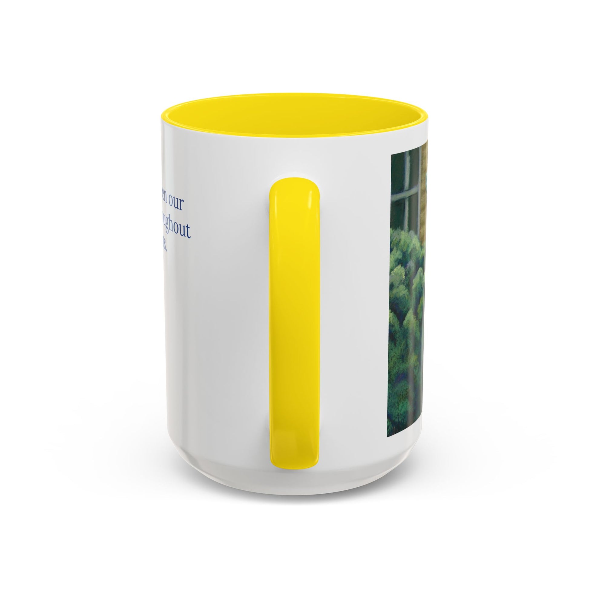 The Dwelling Place mug from Paper Cut Muse features an original pastel painting by P. French Barber, capturing the beloved Yellow House in Portsmouth, Virginia. With its sunlit porch, graceful columns, and blooming greenery, this image evokes the comfort of home and the sacredness of place.