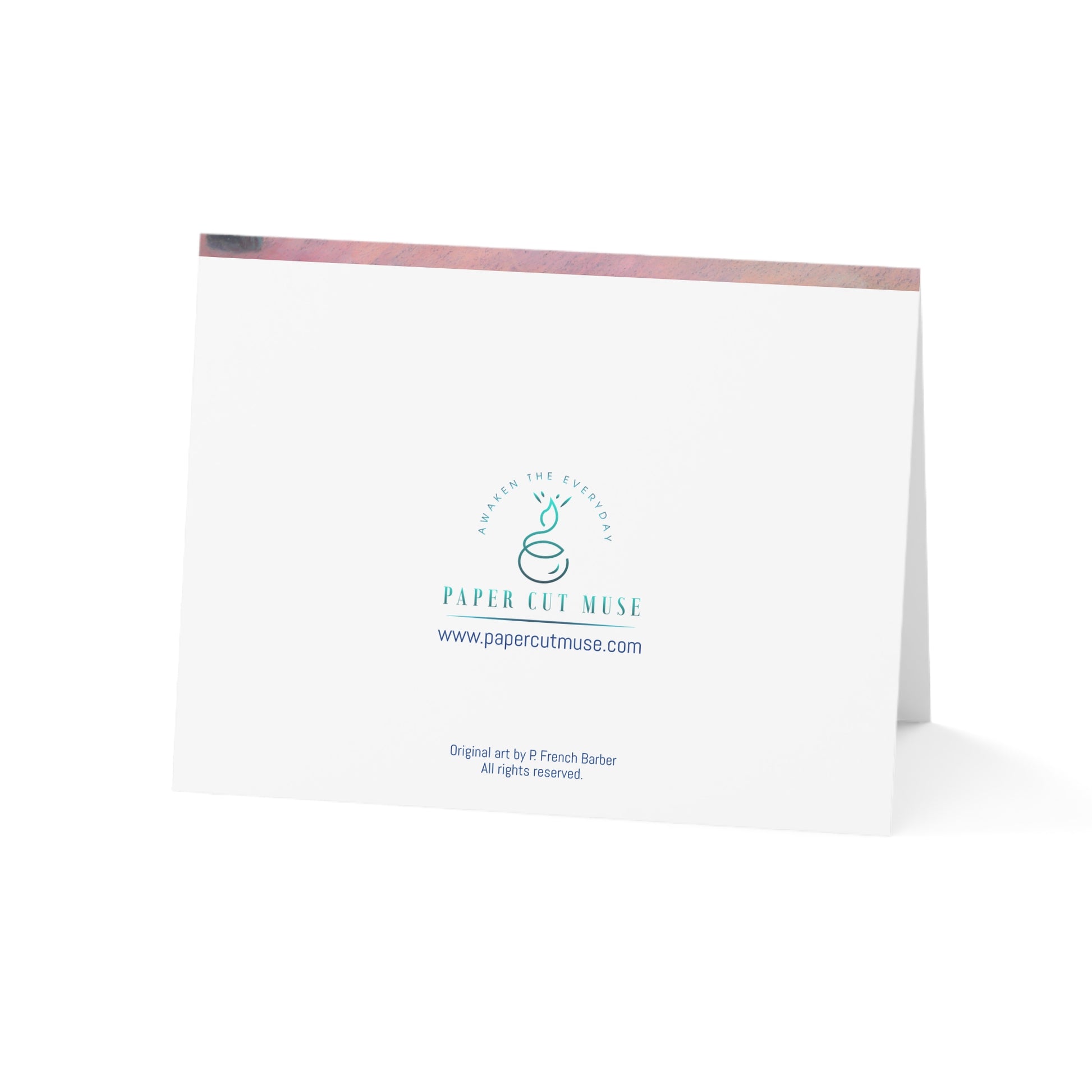 The Mooring card from Paper Cut Muse features an original pastel painting by P. French Barber—a tranquil marina scene with sailboats gently docked beside a coastal home, bathed in the warm glow of sunset. The composition evokes stillness, sanctuary, and the sacred rhythm of rest.Mo