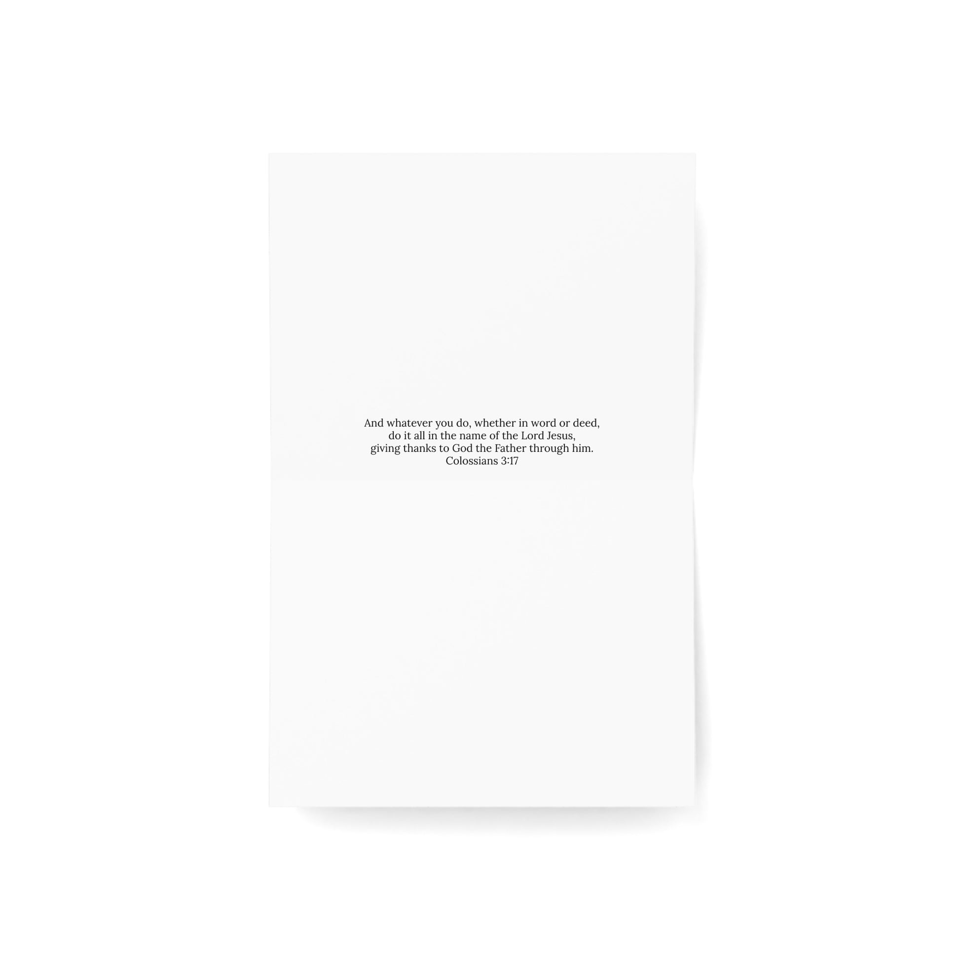 Inside, the scripture from Colossians 3:17 offers heartfelt encouragement: